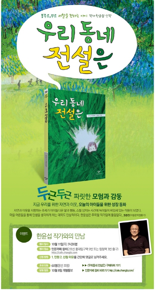 이번 신간 출간을 기념해서 '한윤섭 교수와의 만남' 이벤트가 10월 11일 오후 7시30분에 '인문카페 창비'에서 진행될 예정이다.