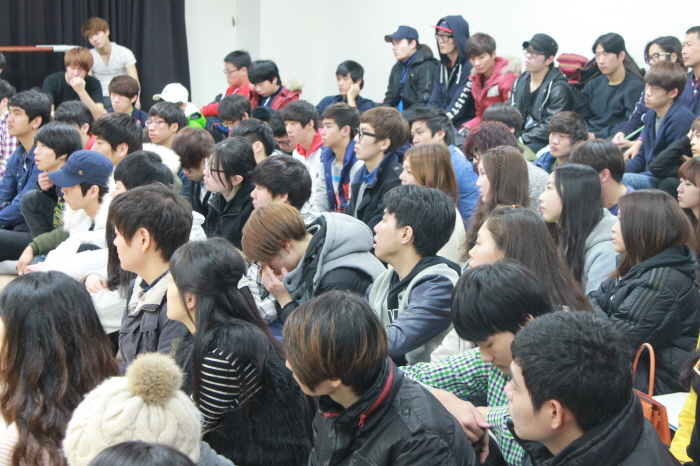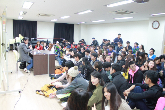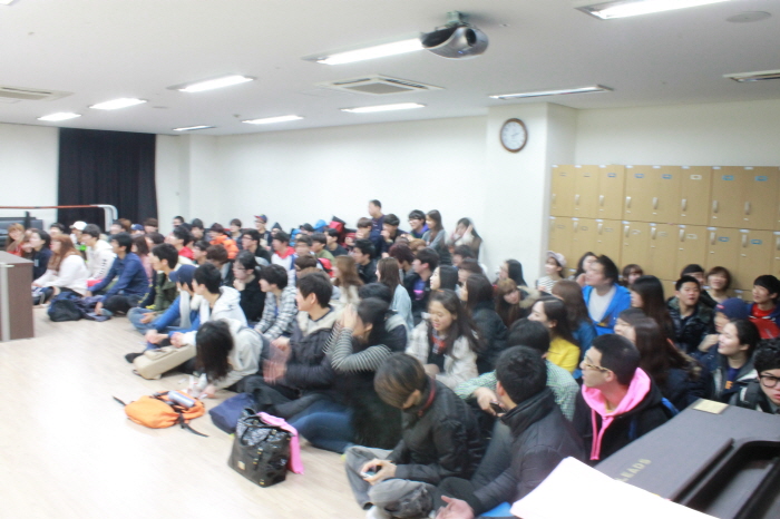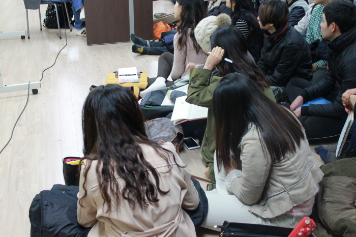 제가 강의실에 도착하였을 때는 이명우 PD가 도착하기도 전인데 많은 학생들이 미리와서 설레이는 마음으로 기다리고 있었습니다. 이미 강의실 안은 뜨거운 열기로 가득차 있었습니다!