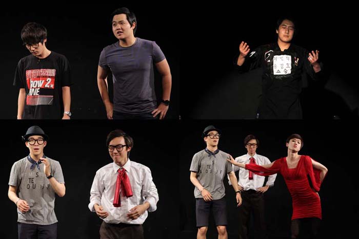 그 다음 4명의 학생들의 한 조로 등장한 꽁트에는 렬한 레드 드레스를 입고 등장한 남학생이 유독 눈에 띄었는데요~어쩜 저렇게 날씬한지.. 부럽네요 ... 가.. 갑자기 땀이.. ;