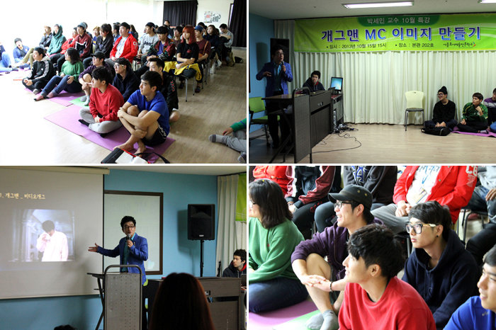 이번 연기예술학부 학생들은 연기, 개그전공 학생들이 다 함께 모여들은 특강으로 비록 개그맨MC에 대한 특강이었지만 그 안에 방송인으로써 준비해야하는 자세나 소재들은 연기를 전공하는 학생들에게도 귀중한 특강이었던 것 같습니다.
