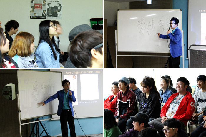 호기심 가득한 연기예술학부 학생들의 눈빛을 눈치채신 박세민 겸임교수께서 몇명의 학생들의 이름 위에 그림을 그려 이름풀이 개그를 해주셨어요.