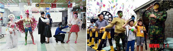 그럼, 우리 학생들이 어떤 분장을 했었는지 한번 볼까요?