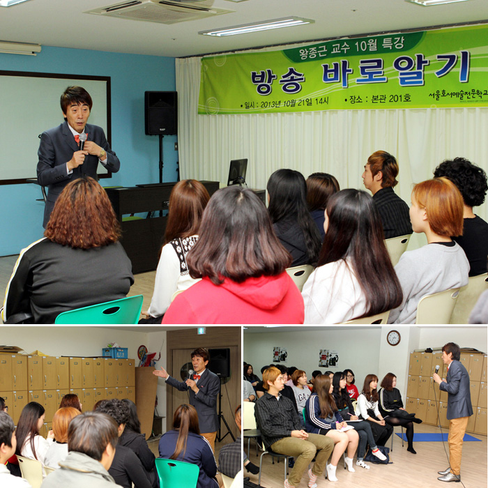 아나운서 출신 방송인이신 왕종근 겸임교수의 특강으로 우리 학생들은 방송과 화법. 이 두마리 토끼를 모두 갖게 되었네요~ 앞으로도 특강 열심히 듣고 멋진 방송인이 되길 바랍니다!!
