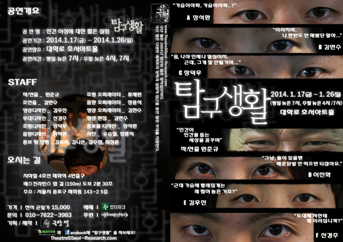본교에서 후원하고 원춘규 교수께서 이끄시는 극단 썰에서 기획/제작한 작품인 [탐구생활]