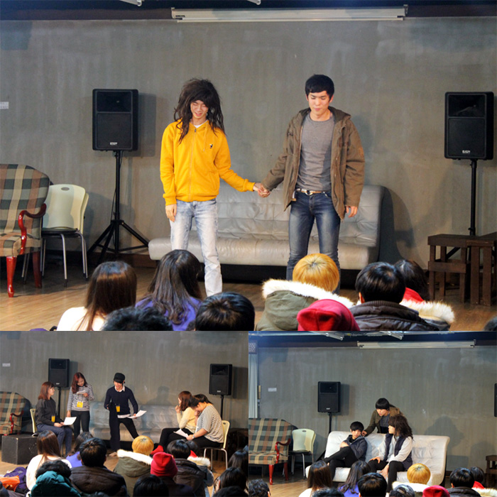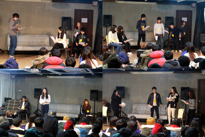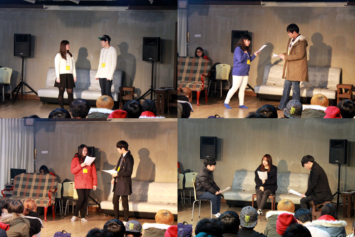 짧은 시간에 대본을 외우는 것이 어려웠던 방송연기과 14학번 학생들은 대본을 보고 연기를 보여줬는데요. 하지만, 발음이라던가 연기하는 모습은 자연스럽죠?