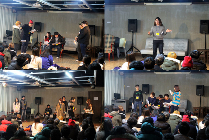 한 자리에 모여서 단막극 발표를 시작하기 앞서서 추첨으로 발표순서를 정했어요.