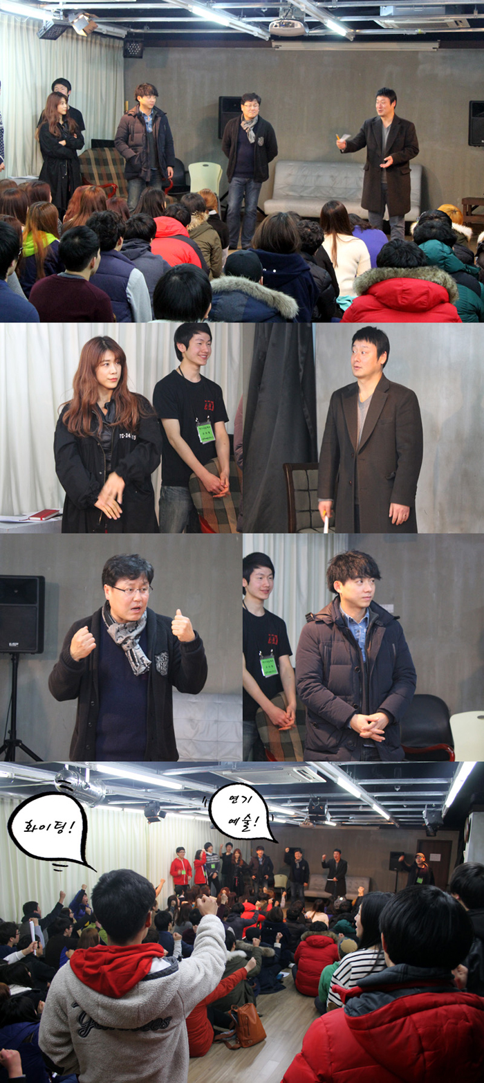아쉽게 만나지 못했던 연기예술학부 14학번 학생들은 이제 입학식과 함께 진행되는 O.T때 친목을 다질 수 있겠죠? 하루라는 짧은 시간이었지만 14학번 학생들과 재학생들의 화목한 모습을 보니 연기예술학부의 2014년도는 더 뜨겁겠는데요??^^