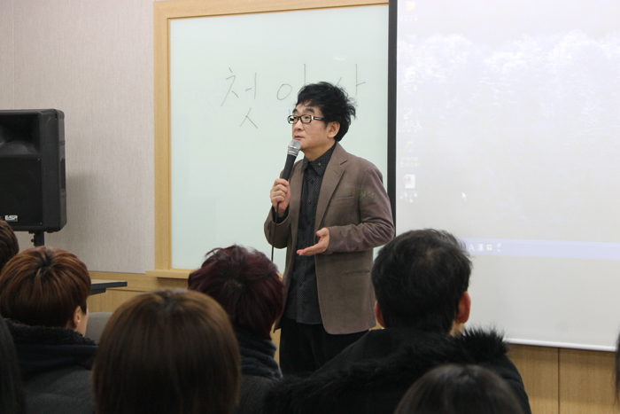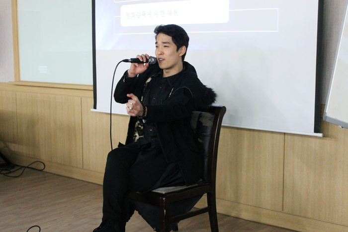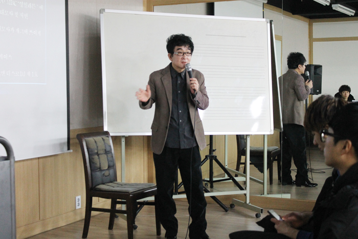 신관 4층에서 본교 연기예술계열 박세민 교수의 특강을 본격적으로 시작하기 전, 교수님께서는 어떻게 데뷔할 수 있었는지에 대해서 설명해 주셨어요.