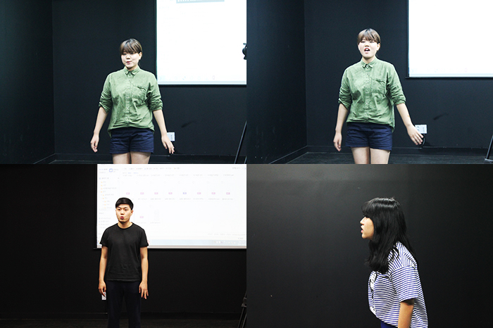두번째로 전효진 학생이 위대한캣츠비의 한장면과 지정대본 연기를 시작했고, 이 친구는 연기를 시작하게 된 동기가, 두려움을 없애고 자신감을 갖기 위해서라고 했습니다. 연기는 자신감이 중요한 만큼. 열심히 노력하고 있는 학생인 듯 했어요.