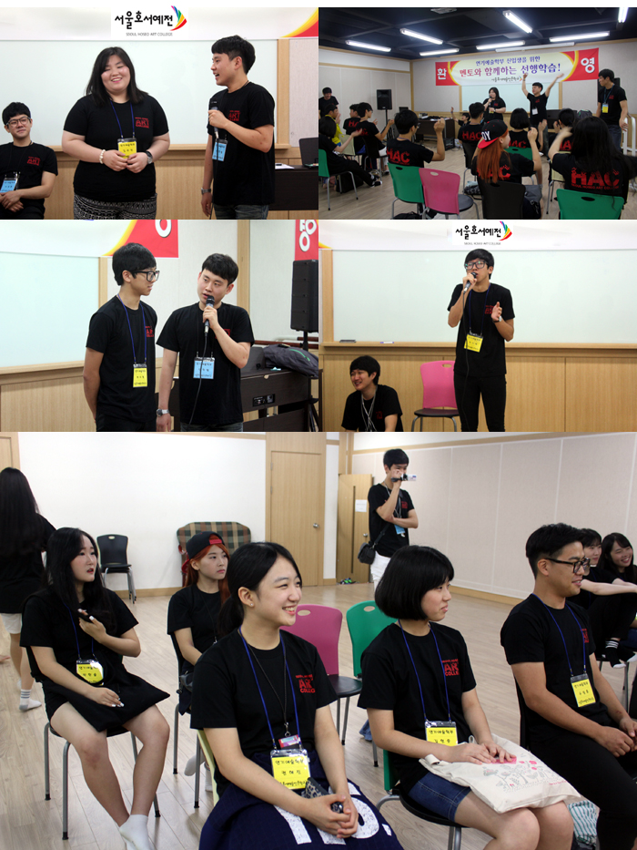먼저, 아직 서먹서먹한 예비신입생들을 위하여 개그학과 1학년 학생의 진행으로 몇명의 학생들이 앞으로 나와 노래, 개인기 등 장기자랑을 선보이며 화기애애한 분위기로 이끌어주었습니다.