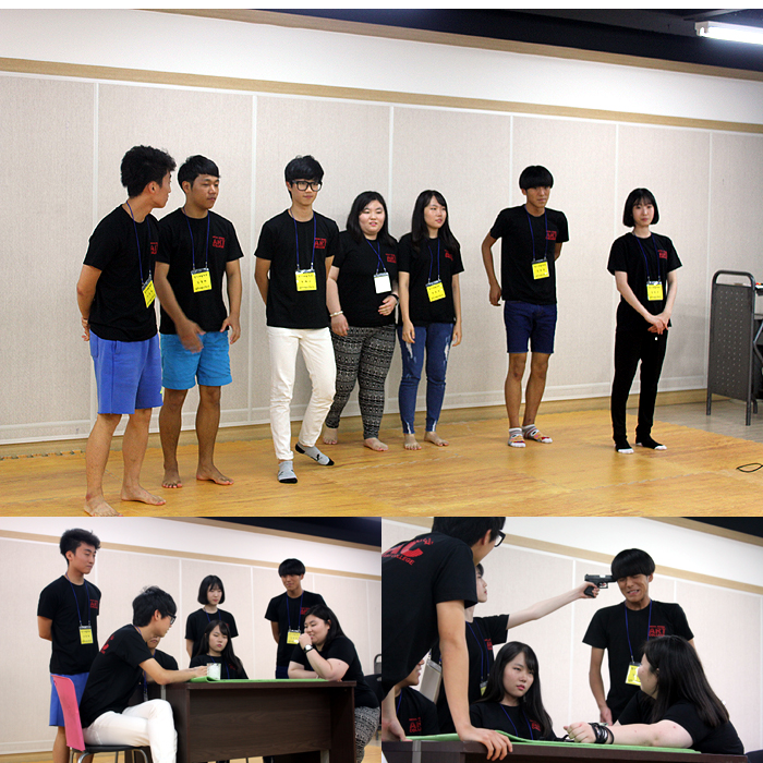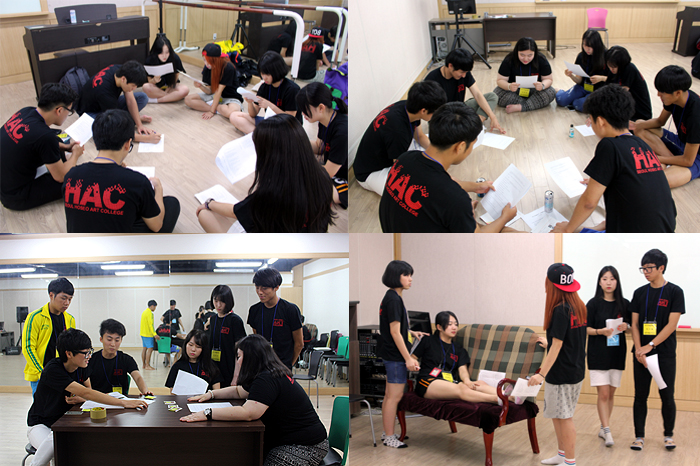 2개의 팀으로 나뉘어진 예비신입생들은 각자 드라마와 영화의 한 장면들을 연기 연습을 했습니다.