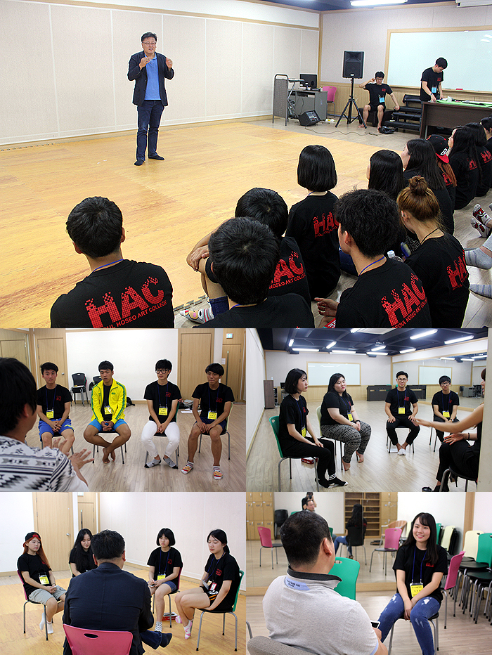 어느정도 예비신입생들이 친해진 분위기가 되자 연기예술학부의 교수님들이 나와 인사를 나누었습니다.