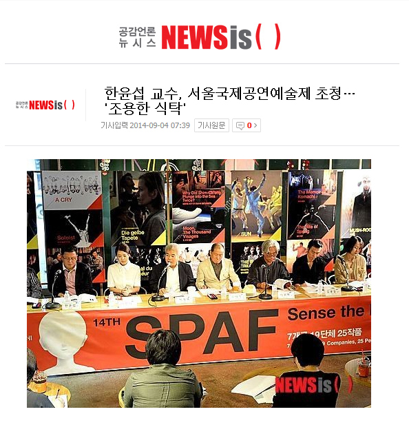 【서울=뉴시스】 본교 연기예술학부 학부장 한윤섭 교수가 25일부터 10월19일까지 서울 동숭동 대학로 예술극장에서 열리는 '2014 제14회 서울국제공연예술제'(SPAF)에 참가한다.