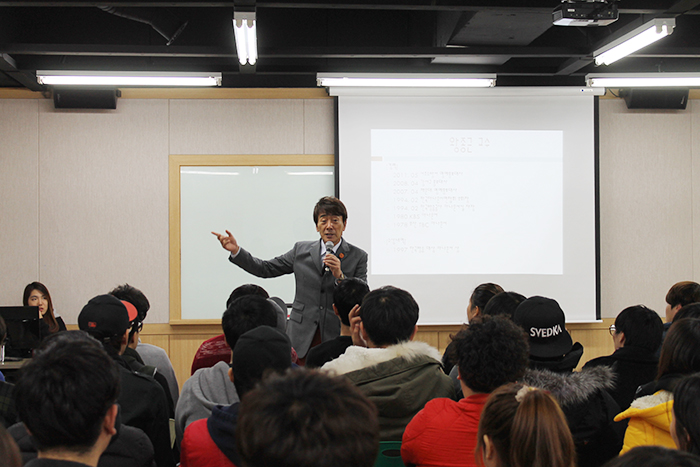 케이블TV 방송 제작의 구조를 알려주는 강의가 아니라, 학생들이 연예계에 진출함에 있어서 실제 방송계 선배로서 케이블 방송사나 외주 제작업체에 들어가는 것이 오히려 더 도움이 될 수 있다는 부분에 대해 말씀하셨는데요.