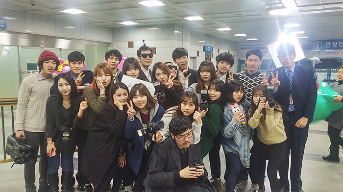 이번 <캔디크러쉬사가> CF의 컨셉은 공항에서 리포터와 유학생, 기자, 카메라맨들이 등장하는 내용으로 평소 본교 연기예술학부 연극뮤지컬,기획제작전공에서 연극 공연 및 카메라 수업 등 실무수업 현장에서 직접 실습 해볼 수 있는 좋은 기회였습니다.