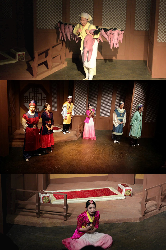 연극 <수상한 궁녀>는 흥부처가 임금님 씨받이로 궁궐에 들어가서 벌어지는 사건을 코믹하게 그려낸 작품으로 본교 졸업생들이 배우로 출연하고 하였으며, 연기예술학부 한윤섭 교수가 직접 극작한 뜻깊은 작품입니다.
