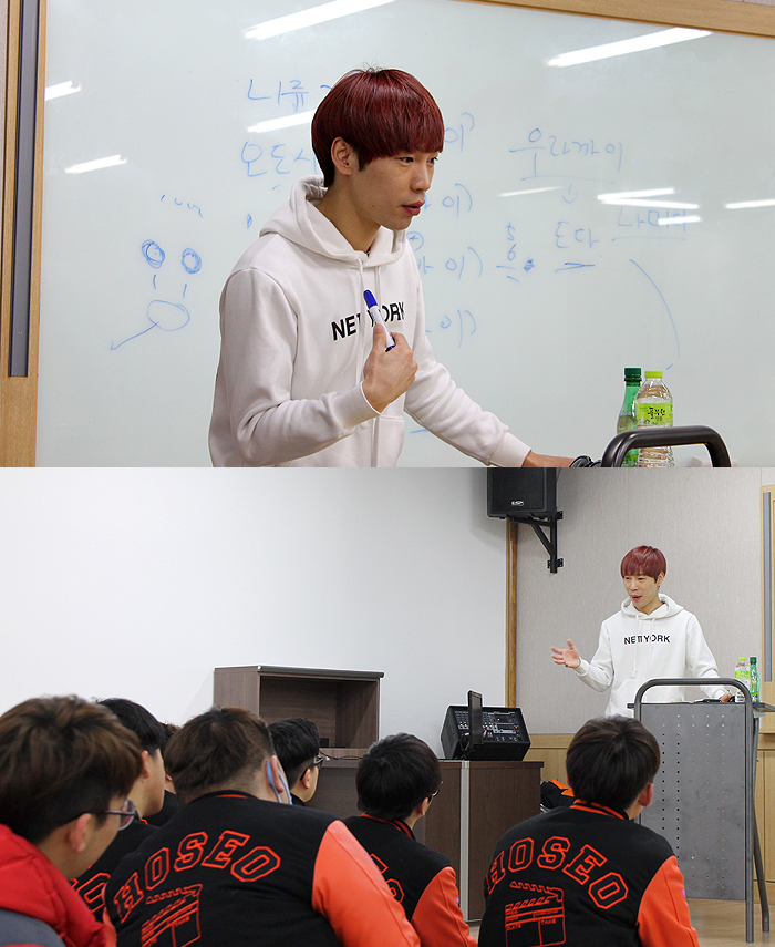 개그전공 학생들에게 앞으로 다양한 경험과 넓은 시각으로 보길 바란다고 전하며, 시청자의 눈으로 개그프로그램을 바라보며 분석하고 코너를 짜는 것보다 코너 속 인물의 눈으로 분석하고 구성하여 코너를 짜는 것이 더욱 재미있고 체계적이라고 강조했습니다~