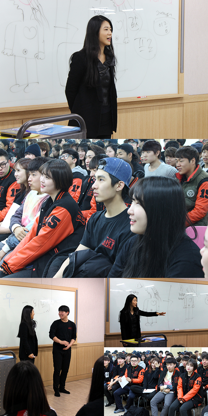 실전 오디션 준비반 첫 수업에는 실전에 앞선 이론수업으로 이윤정 교수는 지난 프로필 사진 촬영을 통하여 자신의 모습을 보는 시간을 가졌을 것이라고 학생들에게 이야기하며, 배우는 외모가 중요하다는 점을 강조하였는데요.