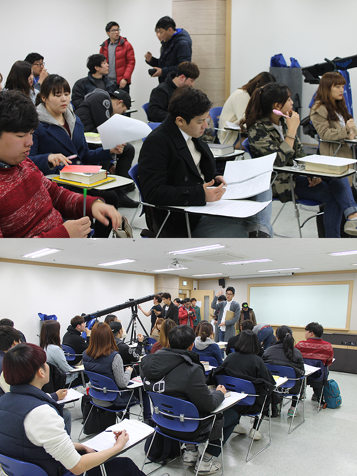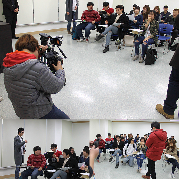 본교 한림관에서 진행된 오후 촬영현장에서는 먼저, 관계자의 촬영 컨셉에 대한 설명이 있었습니다.