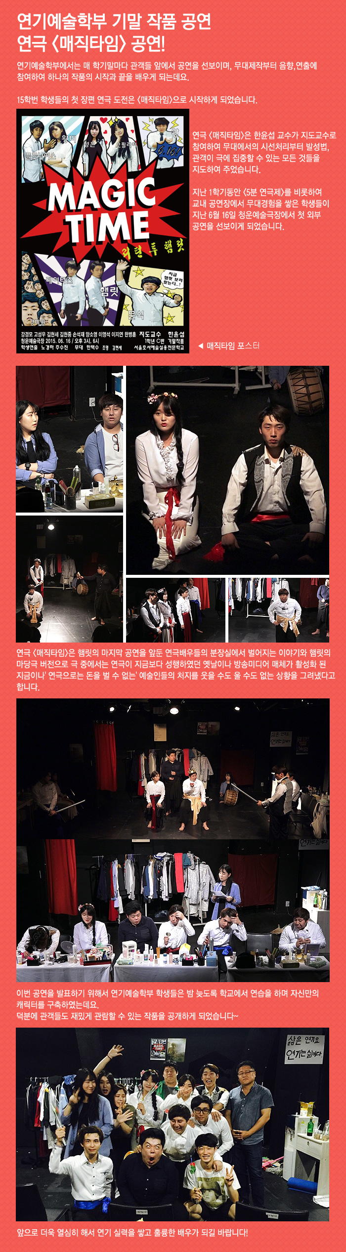 15학번 학생들의 첫 장편 연극 도전은 <매직타임>으로 시작하게 되었습니다.