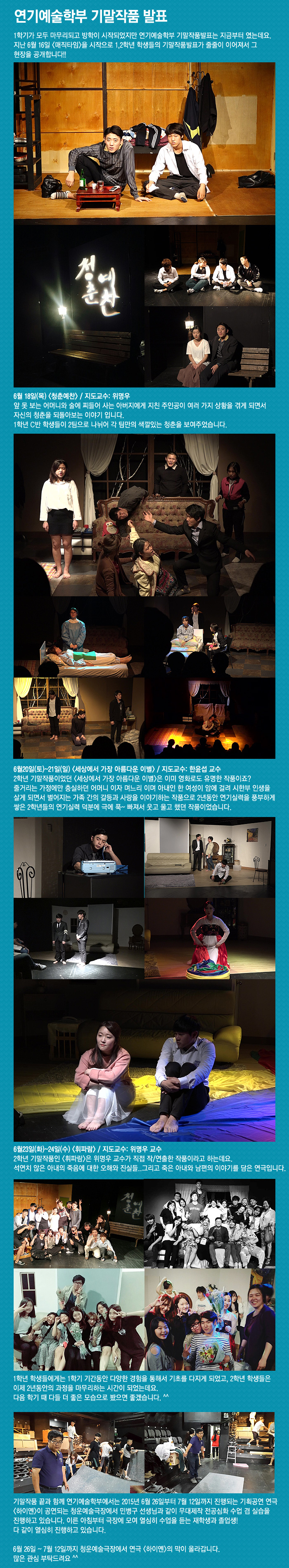 1학기가 모두 마무리되고 방학이 시작되었지만 연기예술학부 기말작품발표는 지금부터 였는데요.