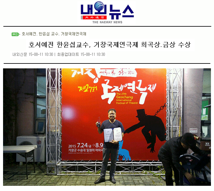 [내외뉴스]한윤섭교수, 거창국제연극제 희곡상.금상 수상