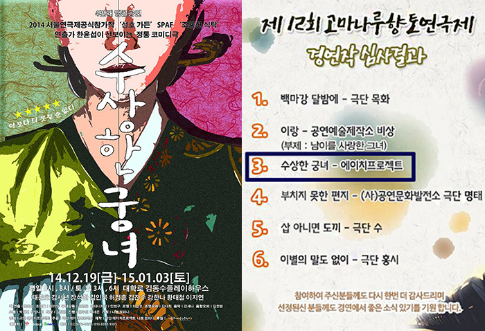 에이치프로젝트의 '수상한궁녀', 고마나루 전국 향토연극제에서 많은 기대 부탁드립니다.