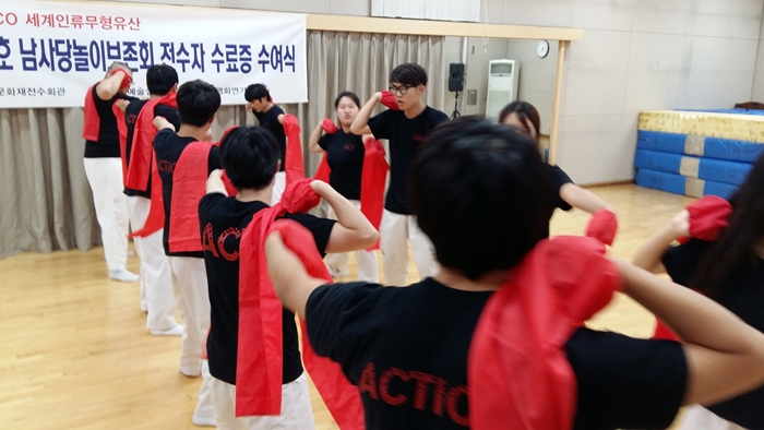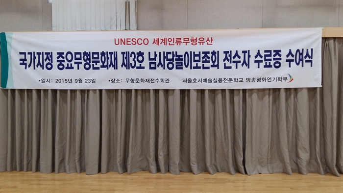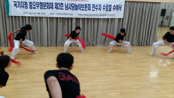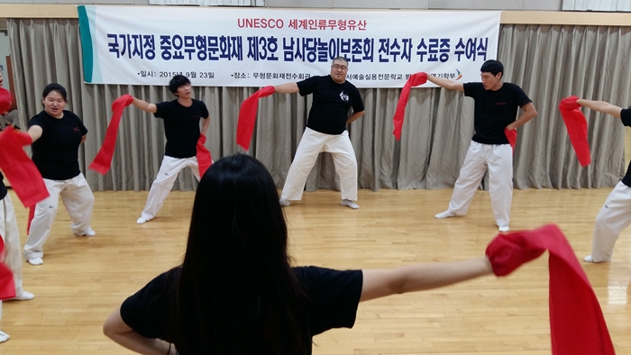 국가지정 중요무형문화재 제3호 남사당놀이보존회 전수자 시험을 치르고 교육과정을 수료를 했습니다.