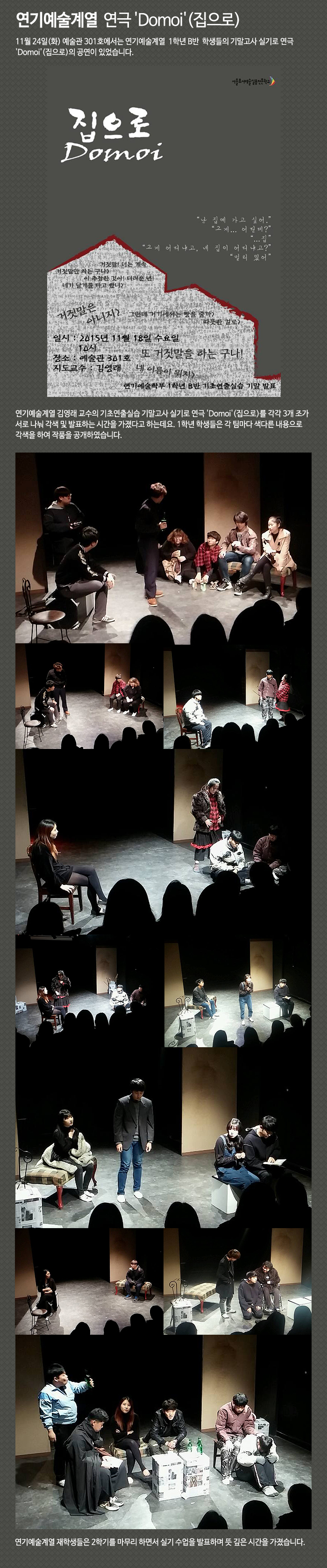 연기예술학부 1학년 기초연출실습 수업 기말작품 연극 'Domoi'(집으로) 발표