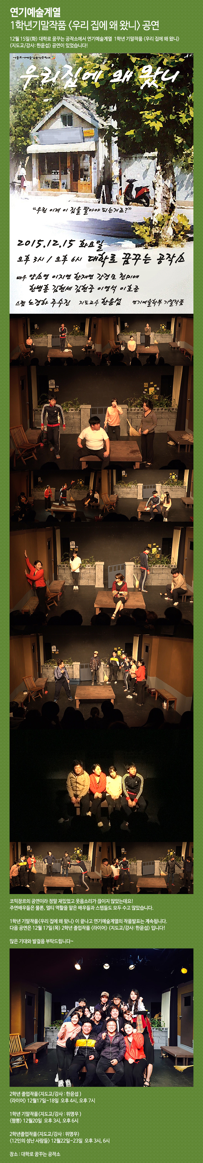 12월 15일 대학로 꿈꾸는 공작소에서 한윤섭 교/강사 지도의 1학년 기말작품 '우리 집에 왜 왔니' 공연이 있었습니다!
