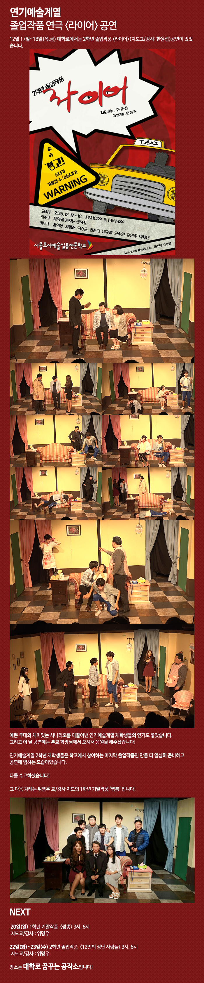 12월 17일~18일 한윤섭 교/강사 지도의 2학년 졸업작품 '라이어' 공연이 있었습니다!