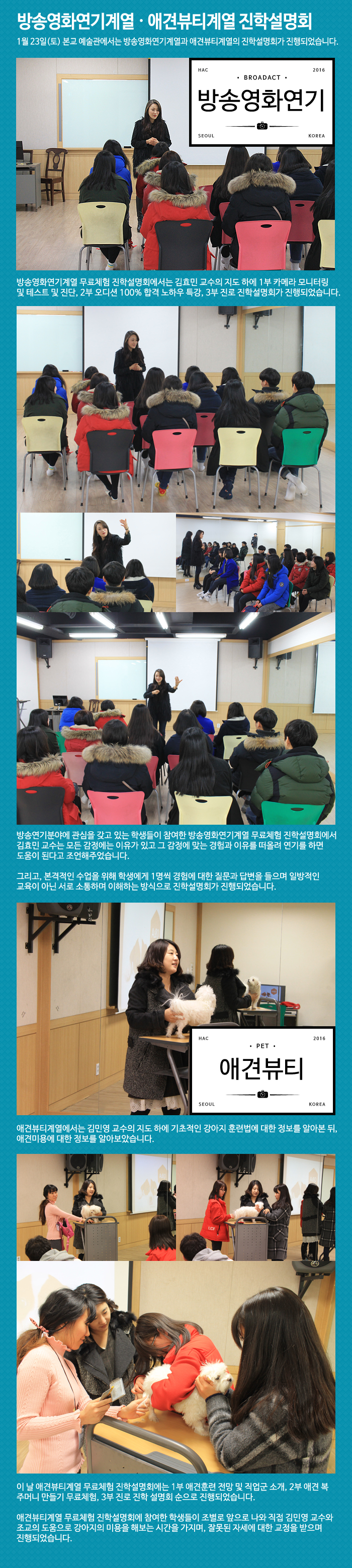 1월 23일(토) 본교 예술관에서는 고3 및 고등학교 졸업자(검정고시 합격자 포함)을 대상으로 한 무료체험 진학설명회가 진행되었습니다.