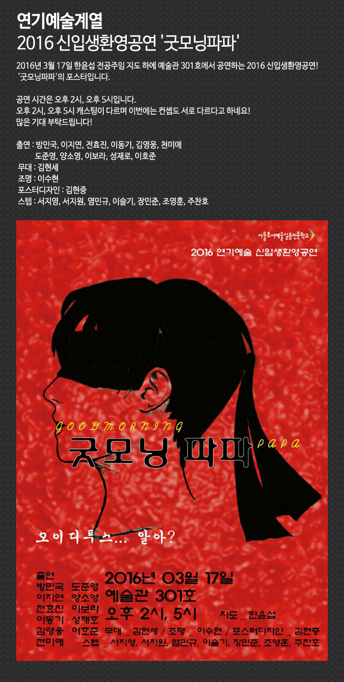 2016년 3월 17일 한윤섭 전공주임의 지도 하에 예술관 301호에서 공연하는 2016 신입생환영공연!
