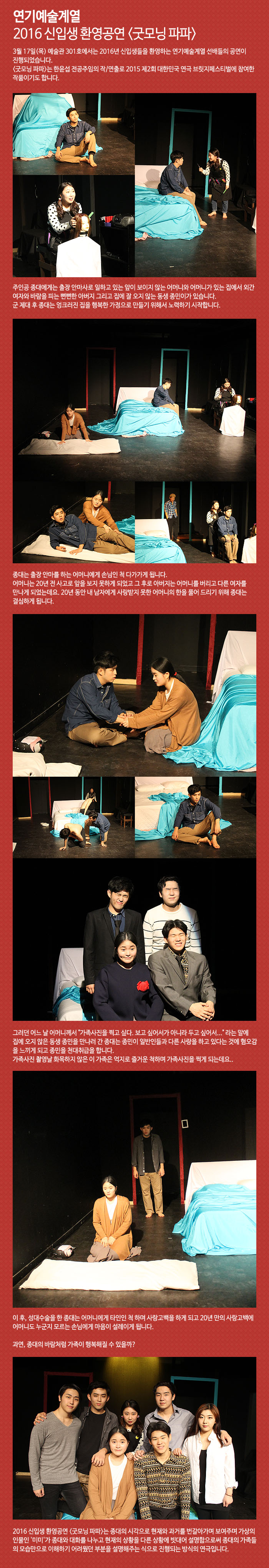 3월 17일(목) 예술관 301호에서는 2016년 신입생들을 환영하는 연기예술계열 선배들의 공연이 진행되었습니다.