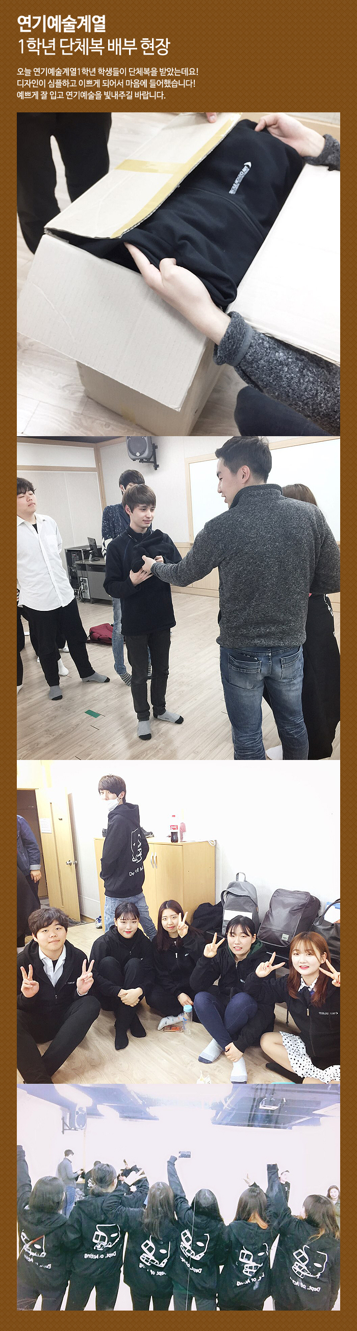 오늘 연기예술계열1학년 학생들이 단체복을 받았는데요!