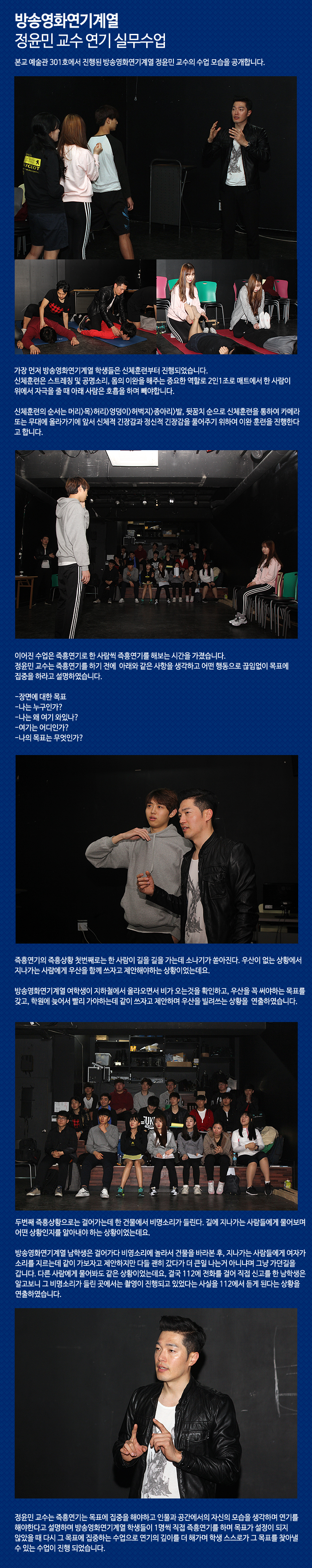 본교 예술관 301호에서 진행된 방송영화연기계열 정윤민 교수의 수업 모습을 공개합니다.