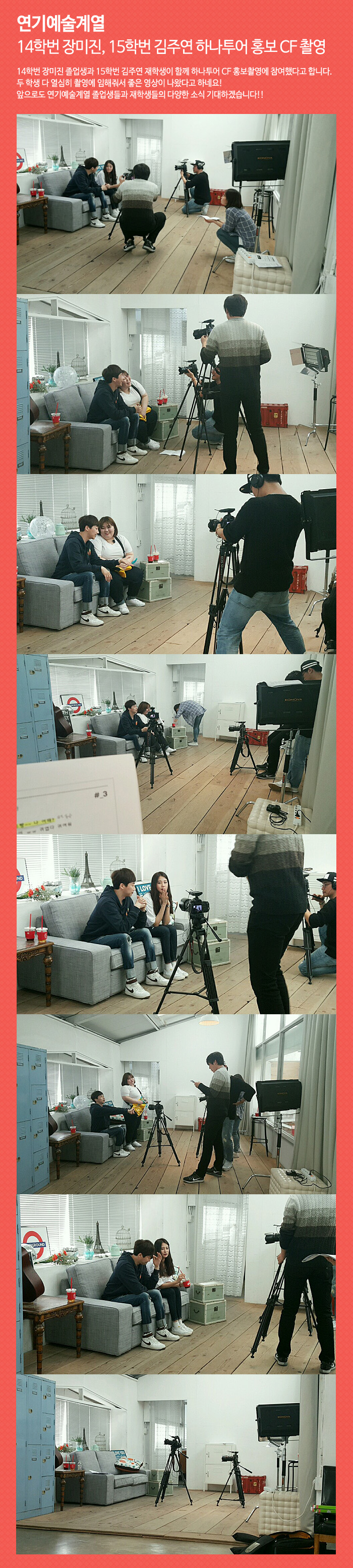 14학번 장미진 졸업생과 15학번 김주연 재학생이 함께 하나투어 CF 홍보촬영에 참여했다고 합니다.