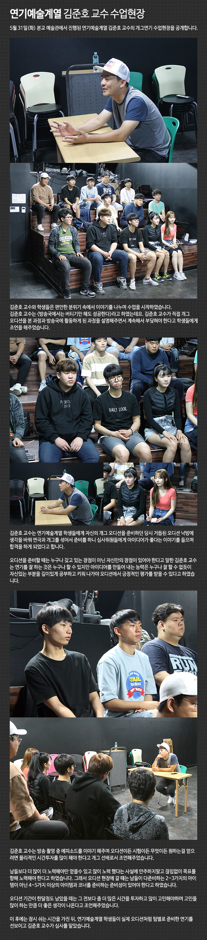 5월 31일(화) 본교 예술관에서 진행된 연기예술계열 김준호 교수의 개그연기 수업현장을 공개합니다.
