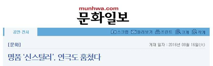 [문화일보] 명품 ‘신스틸러’, 연극도 훔쳤다