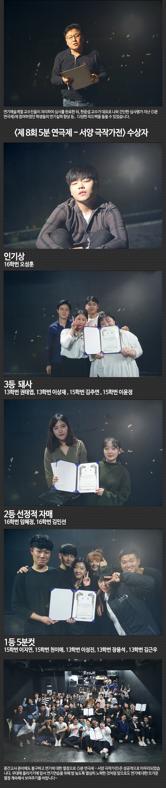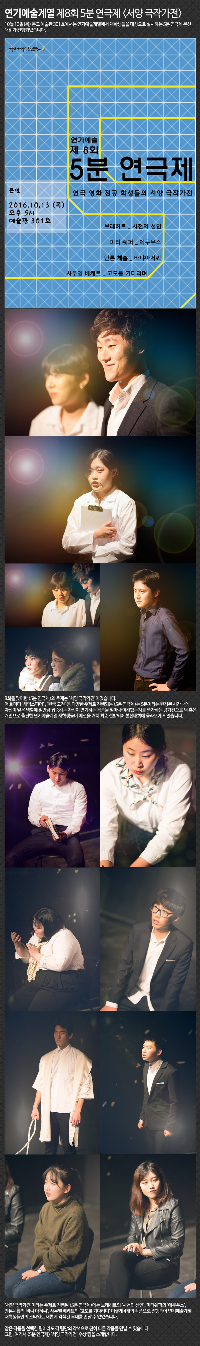 10월 13일(목) 본교 예술관 301호에서는 연기예술계열 재학생들을 대상으로 실시하는 5분 연극제 본선대회가 진행되었습니다.