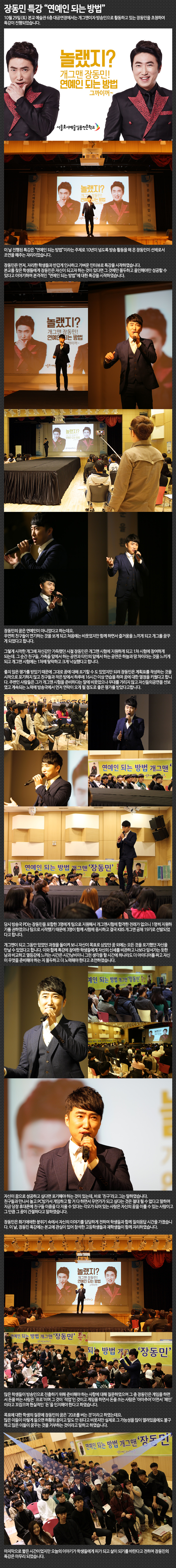 10월 29일(토) 본교 예술관 6층 대공연장에서는 개그맨이자 방송인으로 활동하고 있는 장동민을 초청하여 특강이 진행되었습니다.