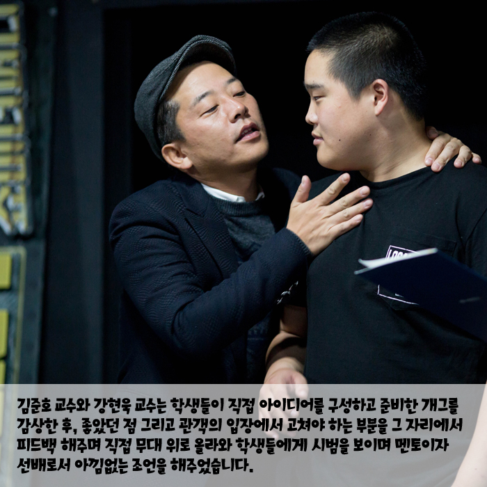 지난 10월 27일(목) 본교에서 진행된 개그공연 얼간이들 vol.6에 앞서 김준호 교수, 강현욱 교수와 함께하는 시간이 있었습니다.