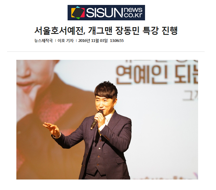 [시선뉴스] 서울호서예술실용전문학교(이하 서울호서예전)가 개그맨 장동민특강을 진행했다고 3일 전했다.