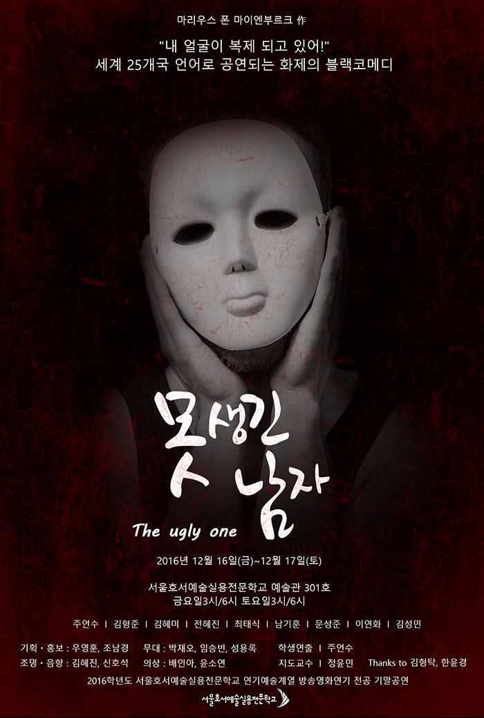 연기예술계열 2학년 학생들의 기말작품공연이 12월 16일(금)~12월17일(토) 오후 3시/ 6시에 본교 예술관 301호 소극장에서 진행 됩니다.