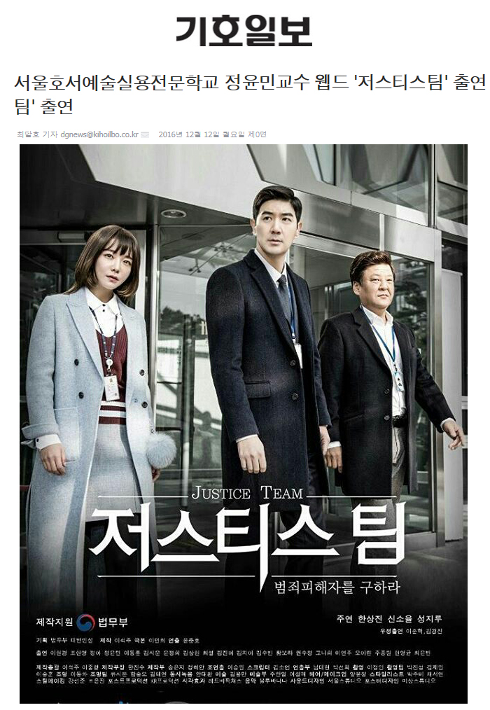 [기호일보]정윤민교수 웹드 '저스티스팀' 출연