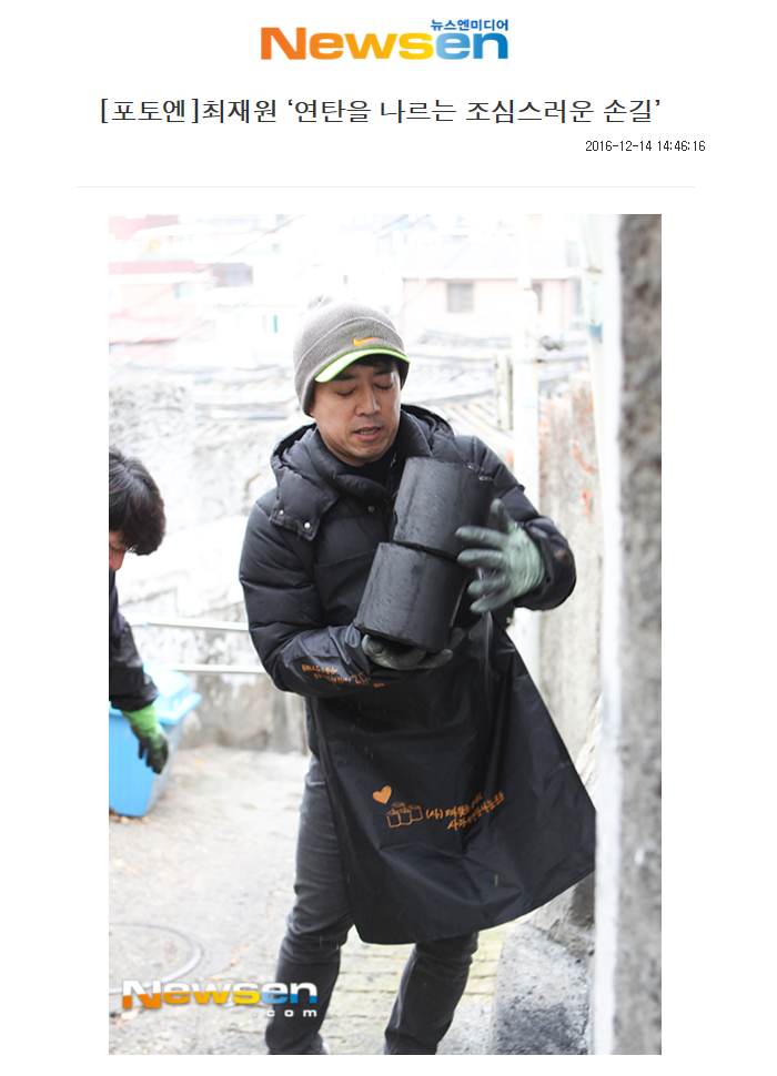 [뉴스엔미디어]최재원 연탄을 나르는 조심스러운 손길