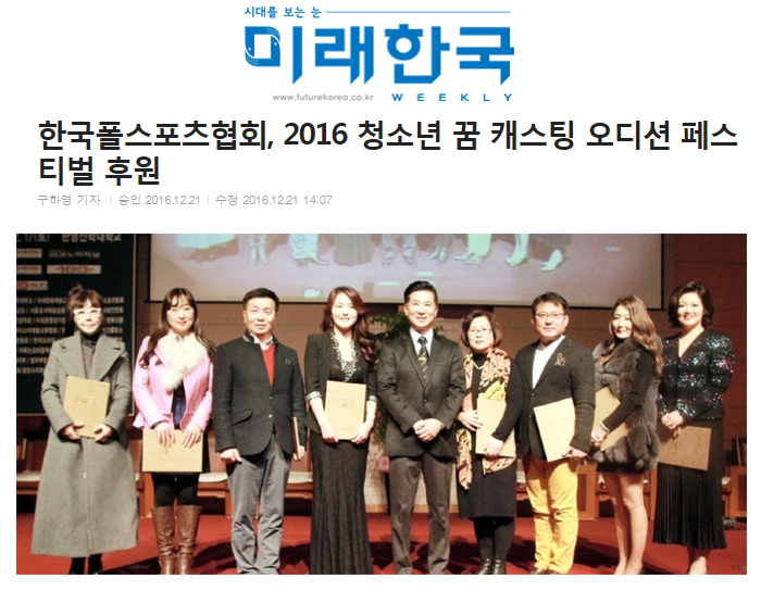 [미래한국]한국폴스포츠협회, 2016 청소년 꿈 캐스팅 오디션 페스티벌 후원