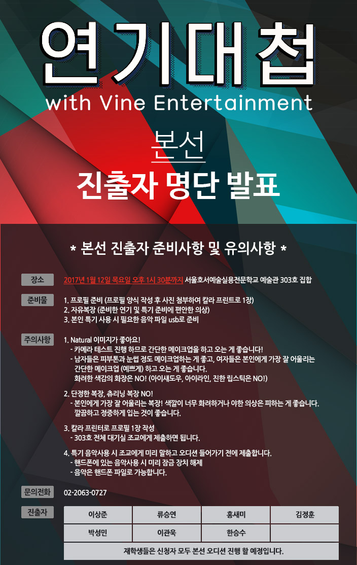 연기대첩 (with 바인엔터테인먼트) 본선 진출자 명단 발표!!