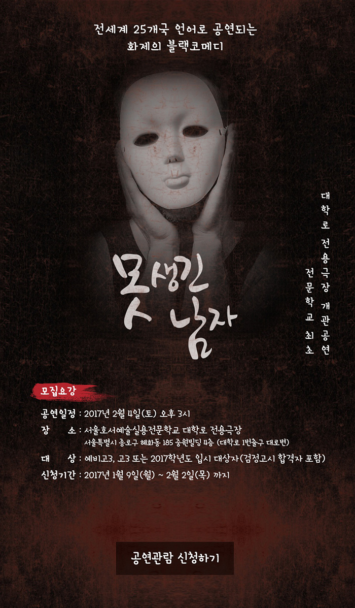 대학로 무료공연! <못생긴남자> 공연도 보고! 선물도 받고! 특별한 하루!