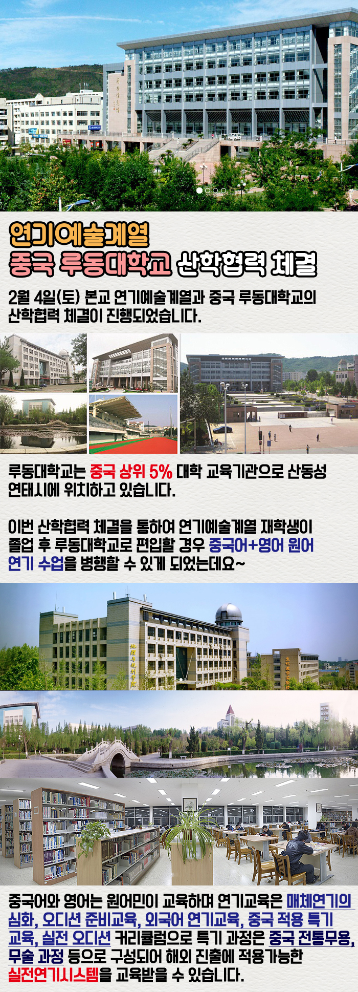 2월 4일(토) 본교 연기예술계열과 중국 루동대학교의 산학협력 체결이 진행되었습니다.